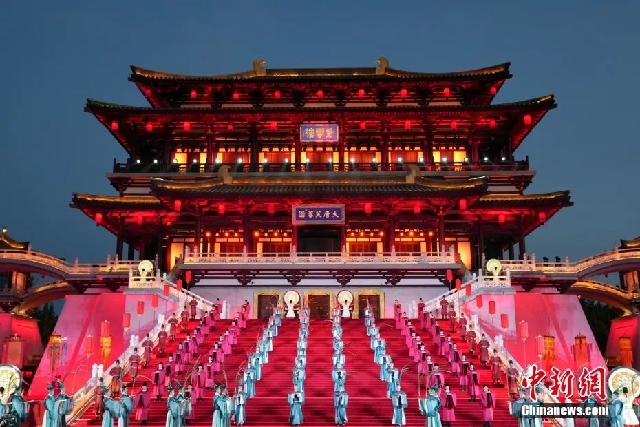 陕西省西安市大唐芙蓉园上演八佾舞,欢迎中国—中亚峰会来宾。(中新社记者 毛建军 摄)