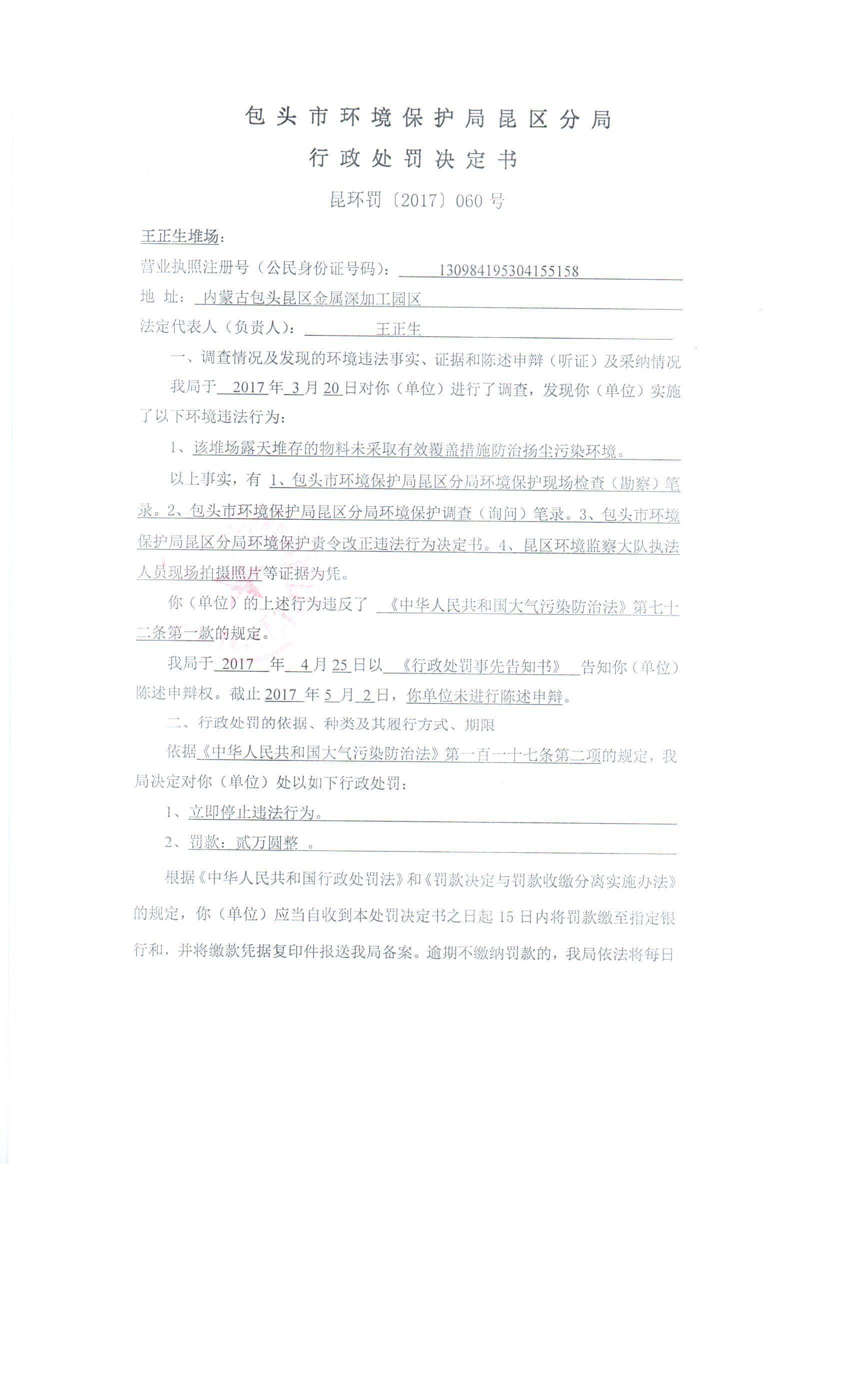 昆区环保分局行政处罚案件2017060