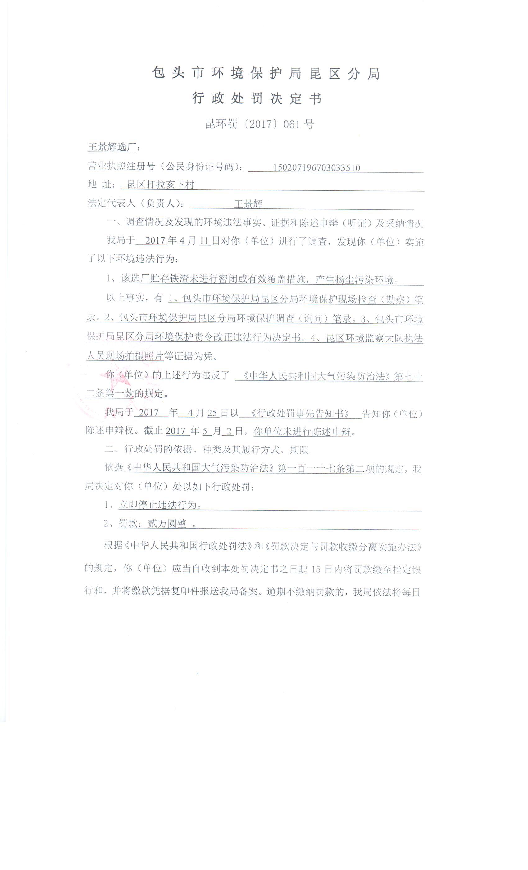昆区环保分局行政处罚案件2017061
