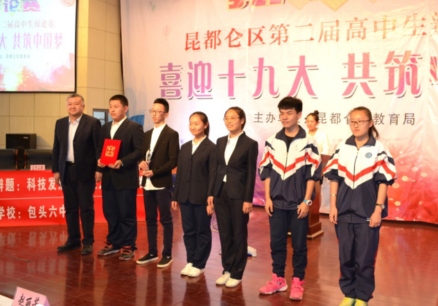 2017年4月27日下午, "喜迎十九大共筑中国梦" 昆区第二届高中生辩论赛决赛暨颁奖仪式在包头六中成功举行。市教育局基教科副科长王鑫,昆区团委书记王彤,昆区教育局局长郝云山,副局长孟庆春、石文明、王素珍,团委副书记闫文华、王昊鹏参加了活动。辩论赛决赛评委由昆区教育局关工委常务副主任郎建军、中教科副科长任慧芳、教研中心政治教研员赵丽芳担任。