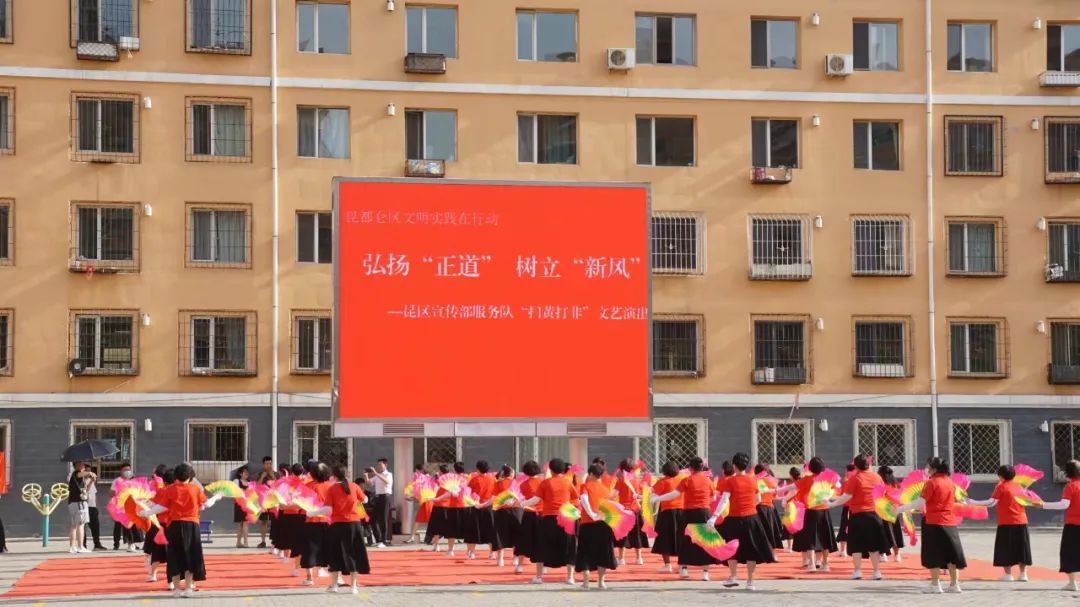 在胜利佳苑的文化广场,昆河镇胜利村举办了弘扬“正道”、树立“新风”“扫黄打非”文艺演出。舞蹈《最亲的人》、古筝二重奏《新编十面埋伏》、小戏《抢财神》等精彩节目以弘扬健康向上的文化精神为主旨,紧扣“扫黄打非”和新时代文明实践为主题,吸引大量村民观看,赢得了现场观众阵阵热烈掌声。
