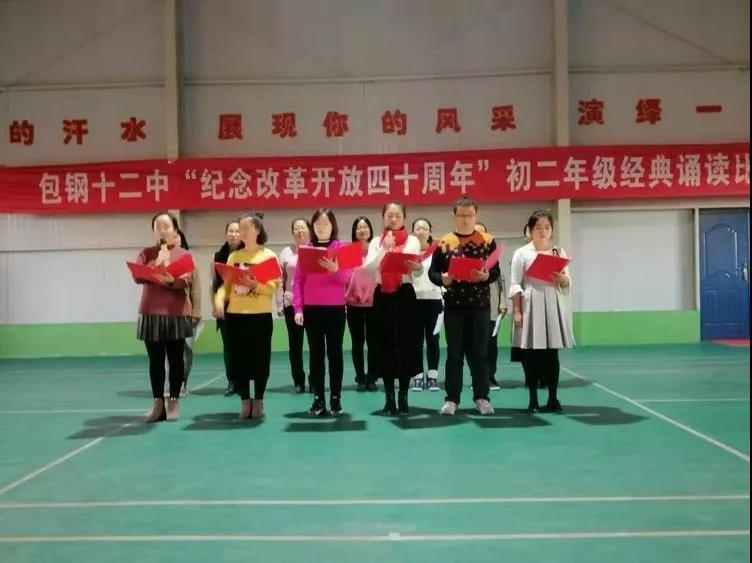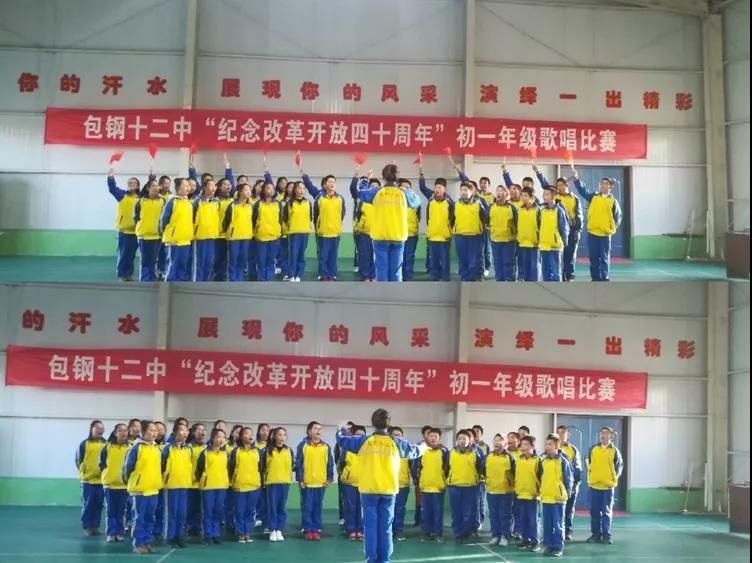 近日,包头市奥林社会实践基地体育馆热闹非凡,包钢第十二中学初一、初二年级的同学和班主任老师们,展开了一场别开生面的合唱比赛及经典诵读活动,为改革开放四十周年献礼。