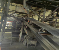 三条球磨生产线皮带机上料系统型号相同,由南向北依次进行布置,最南端为一号、最北端为三号,其尾轮设置在宽2.5米、长6.7米、高2.7米的半封闭地坑内,尾轮距离地坑基准面0.45米、皮带宽0.65米、尾轮长度0.9米、皮带总长度13.2米、向上水平倾角为15°左右、头轮的水平距离车间地面高度为2.1米,运行速度为1.25米/秒。事发的三号皮带上料皮带头尾轮未设置防护罩,未设置紧急停车按钮或应急拉绳开关,整条皮带周围未设置安全隔离措施。
