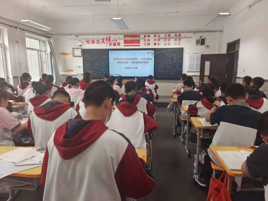 尝试跨学科项目主题学习,通过多学科集体备课教研,同授一节课等方式,融合历史、地理、思政、语文等学科中铸牢中华民族共同体意识内容,要求教师充分掌握、分析、评估学生能力情况、知识结构、思想状况、对民族及民族关系的认知和态度,把握初中学生的认知特点和身心发展规律,结合挖掘内蒙古自治区、包头市和昆区民族团结元素,不断完善教学内容方法,提高跨学科主题学习课堂教学针对性。在教育教学中规范用好国家通用语言文字,发挥好语言的沟通交流桥梁作用。