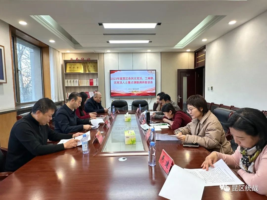 为贯彻落实“党委出题、党派调研、政府采纳、部门落实”工作要求,高标准完成各民主党派、工商联、无党派人士重点课题,12月7日,区委常委、统战部部长张国强主持召开区各民主党派、工商联、无党派人士重点课题调研座谈会,听取成果汇报,推动各方交换意见、学习借鉴,进一步提高课题成果质量。